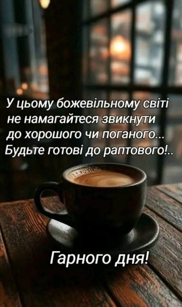 Гарні листівки з життєвими мудростями, приємними щирими словами та милими картинками допоможуть близьким та друзям відчути вашу турботу та любов. Неважливо, яке свято ви відзначаєте або просто хочете побажати доброго раночку гарного дня - вибирайте потрібну листівку та напишіть у ній свої щирі побажання.