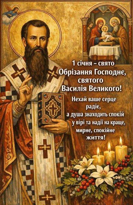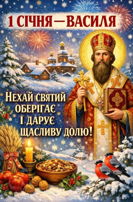1 січня (14 січня за старим календарем) відзначають день пам’яті святого Василя Великого — одне з найважливіших свят зимового обрядового циклу, що символізує добрий початок і Боже благословення нового року.