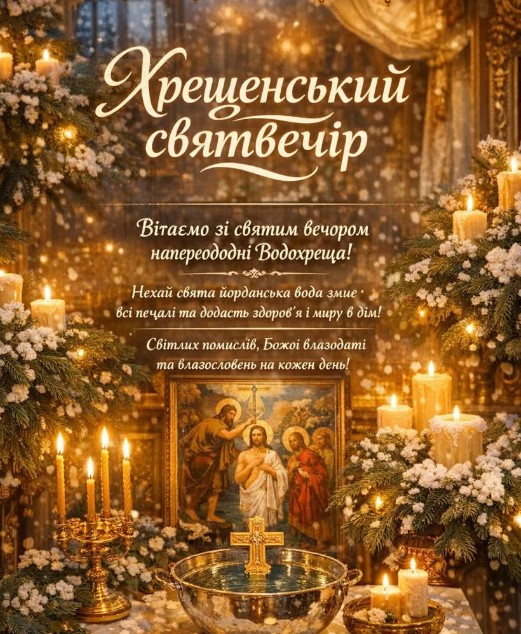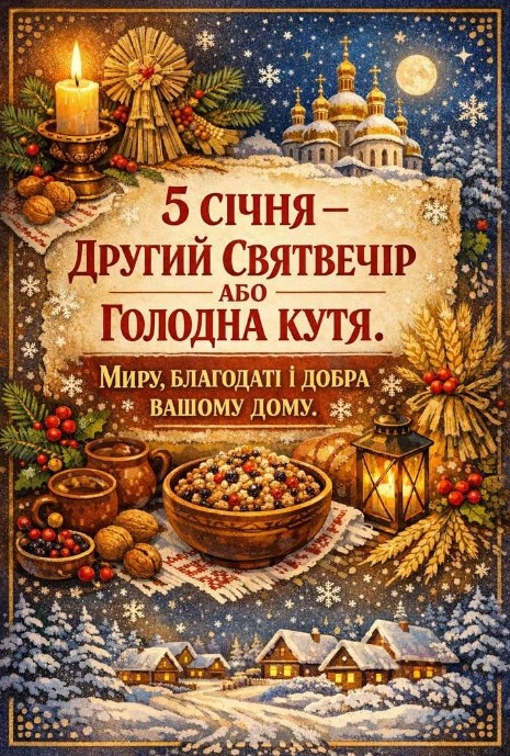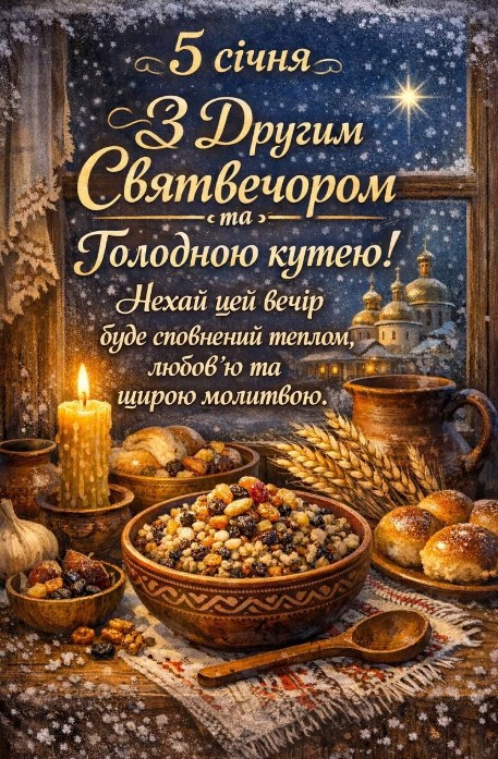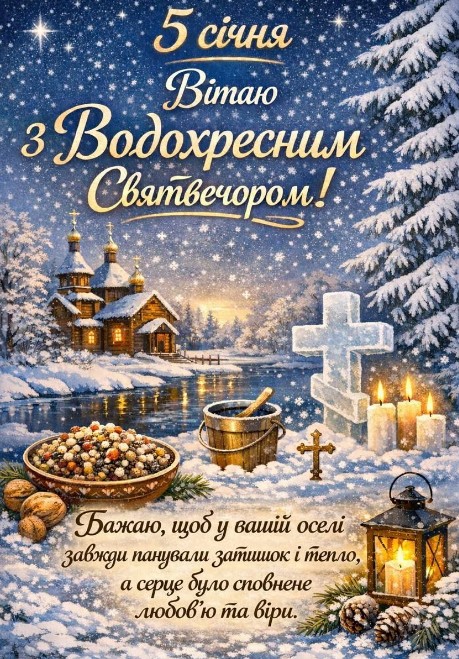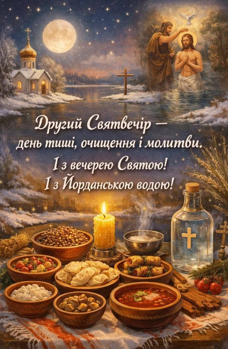 Водохресний Святвечір українці святкують 18 січня, а ще це - Другий Святвечір або ж Голодна кутя. Під час свята проводили обряди, пов’язані з осв’яченням води. Напередодні Водохреща це відбувалося в храмах, а вже в саме свято Хрещення – на вулиці, біля джерел і річок. Існувало повір’я, згідно з яким сніг, зібраний у Водохресний вечір, здатний зціляти хвороби. Тому, снігом вмивалися, а талу воду довго зберігали, використовуючи її для господарських цілей і навіть як ліки. Дівчата 18 січня часто вмивалися снігом, щоб зробити шкіру більш білою і красивою. День 18 січня в народі також відомий як Голодна кутя. За старим звичаєм в цей вечір не вечеряли і намагалися не приймати їжу до самого ранку 19 січня. Назва Голодна кутя походить від того, що саме в цей час веселощі припиняли поряд з рясними застіллями, і починався наступний пост. В Водохресний Святвечір готували голодну кутю (прісне сочиво) без масла і сиру.