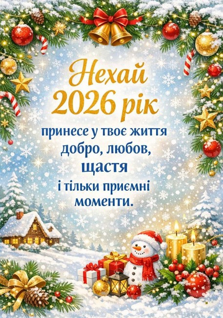 Нехай наші листівки та картинки допоможуть привітати ваших друзів та родичів з новим роком, передадуть тепло та позитивне відчуття Нового Року 2026, запрошуючи всіх у світ чудес та добра!