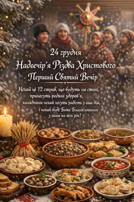 За новоюліанським та григоріанським календарями Святий вечір в 2024 припадає на вівторок, 24 грудня. На юліанським - на понеділок 6 січня.